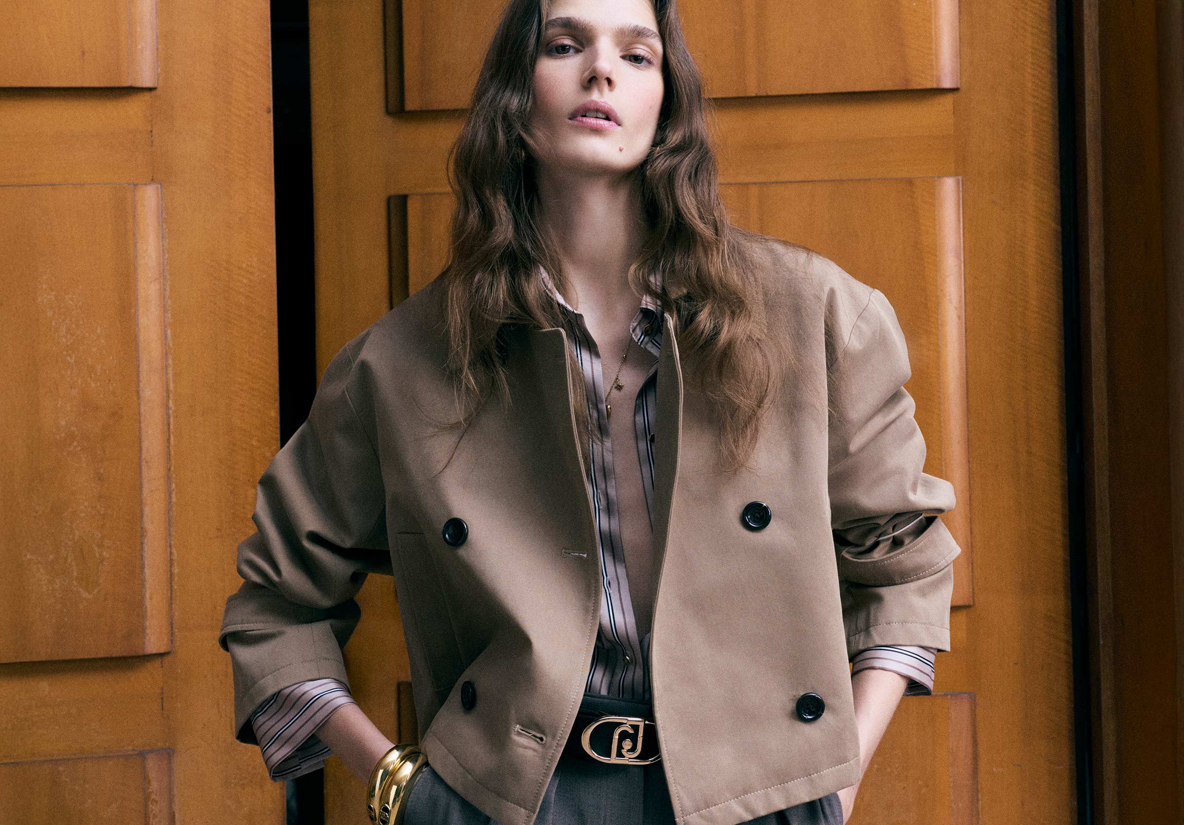 Unter den regenfesten Modellen für die Übergangssaison faszinieren die langen oder kurzen Modelle des Trenchcoats aus Baumwoll-Gabardine oder mit fließenden Linien.